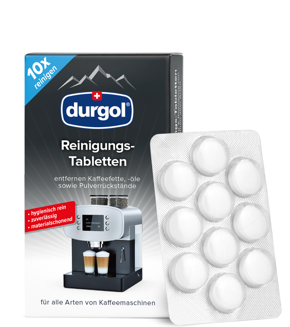 Mentiune: Tabletele de curatare Durgol nu au efect de detartrare. In acest scop va recomandam decalcifiantul special Durgol Swiss Espresso, deoarece atunci cand vine vorba de intretinerea aparatului dumneavoastra de cafea, detartrarea este la fel de importanta ca si curatarea si degresarea.