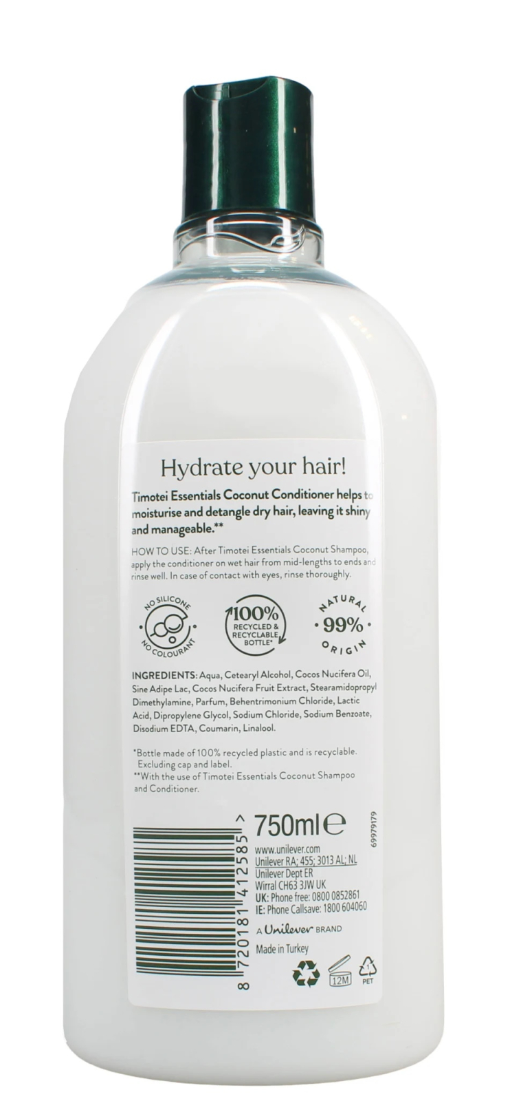 Formula sa cremoasa cu 99% ingrediente de origine naturala, fara silicon si fara coloranti actioneaza asupra parului uscat, il hidrateaza, il descurca si il lasa stralucitor si usor de coafat.