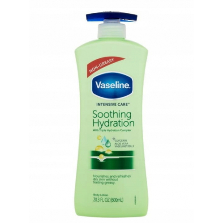 Vaseline Intensive Care este o lotiune de corp hidratanta care calmeaza si hidrateaza eficient pielea uscata datorita unei combinatii de aloe si glicerol. Formula sa avansata imbogatita cu un complex triplu de hidratare garanteaza o ingrijire profunda si de lunga durata, restabilind echilibrul natural al pielii si protejand impotriva pierderii de umiditate.